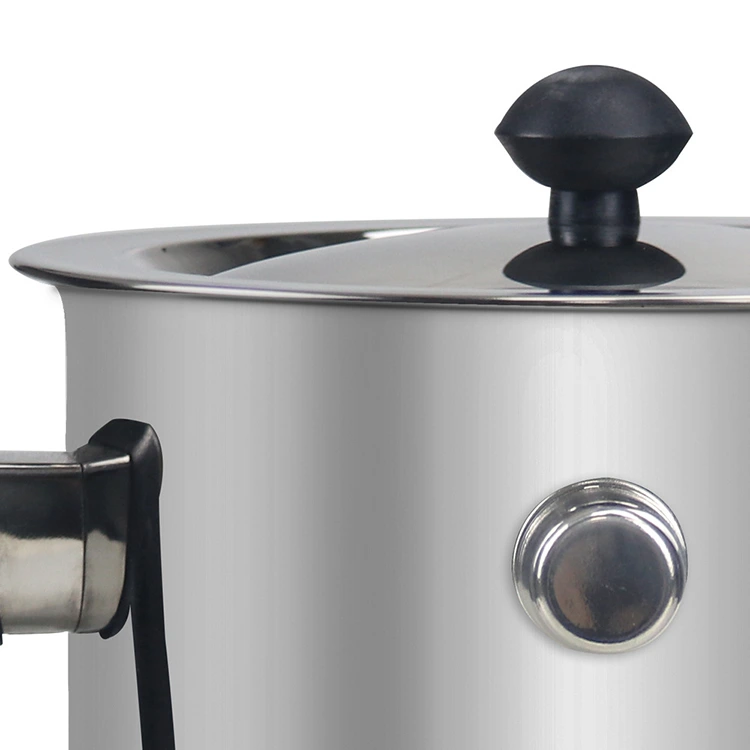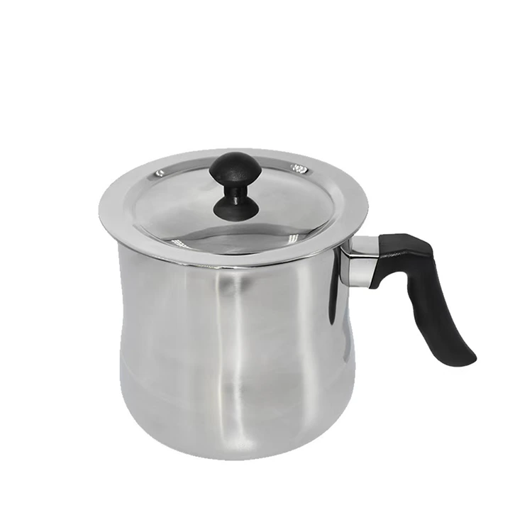 Ensinnäkin lämmönkestävä kahva: kattila on varustettu tukevalla, lämmönkestävällä kahvalla, joka on suunniteltu istumaan mukavasti käteen, jolloin käyttäjät voivat pitää ja liikuttaa kattilaa helposti ilman, että se polttaa, mikä varmistaa turvallisen käytön. Kahva on tiukasti kiinni ruukun rungossa, sitä ei ole helppo löysätä, mikä varmistaa pitkäaikaisen käytön turvallisuuden. Toiseksi ruostumattomasta teräksestä valmistettu kansi: kattilassa on läpinäkyvä ruostumattomasta teräksestä valmistettu kansi, jonka avulla käyttäjät voivat tarkkailla sisällä olevien materiaalien tilaa (kuten vahan sulaminen, suklaan sulaminen, maidon kiehuminen) avaamatta kantta, välttäen lämpöhäviöitä ja materiaalin roiskeita sekä helpottaa käsittelyprosessin reaaliaikaista ohjausta.