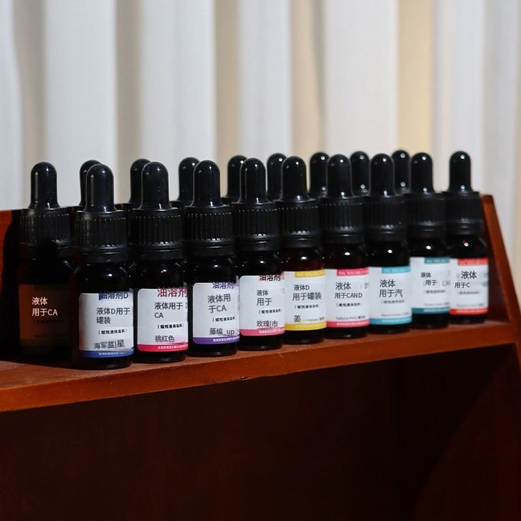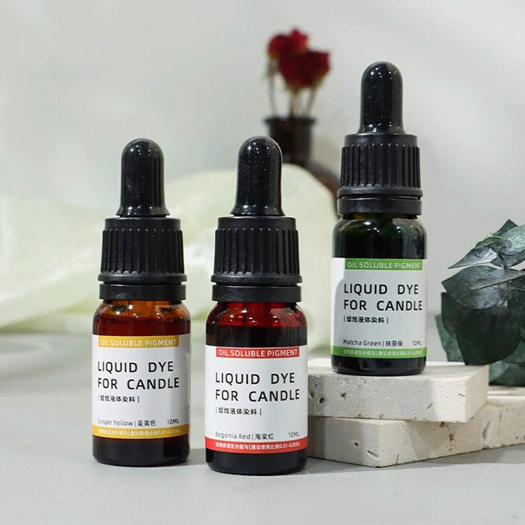 Nestemäinen kynttiläväri, joka on suunniteltu käyttäjäystävällisyyteen, on erittäin helppokäyttöinen ja sopii kaikentasoisille käyttäjille aloittelijoista ammattivalmistajiin. Nestemäinen muoto eliminoi leikkaamisen tai sulatuksen tarpeen, mikä on helpompaa kuin kiinteät väriaineet – käyttäjien tarvitsee vain lisätä sopiva määrä väriainetta sulaan vahanesteeseen, sekoittaa kevyesti muutaman sekunnin ajan, jolloin väriaine liukenee nopeasti ja hajoaa tasaisesti ilman agglomeraatiota tai väriraitoja. Pienen tilavuuden 5 ml ja 10 ml pullot on varustettu helposti ohjattavilla tiputtimilla tai suuttimilla, jotka mahdollistavat lisäyksen pisara kerrallaan, mikä mahdollistaa annostuksen ja värisyvyyden tarkan hallinnan. Tämä ei ainoastaan ​​yksinkertaista käyttöprosessia, vaan myös vähentää toimintavirheiden riskiä varmistaen, että jokaisella kynttiläerällä on tasainen värivaikutelma. Jopa aloittelijat voivat helposti luoda kauniita, tasavärisiä kynttilöitä vähällä vaivalla.